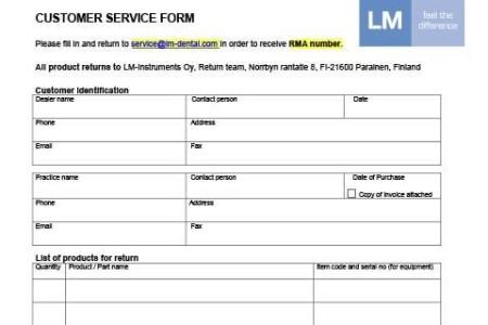 - Send the Customer Service Form to service@lm-dental.com. Please attach also a copy of the invoice so we can determine the status of the warranty.