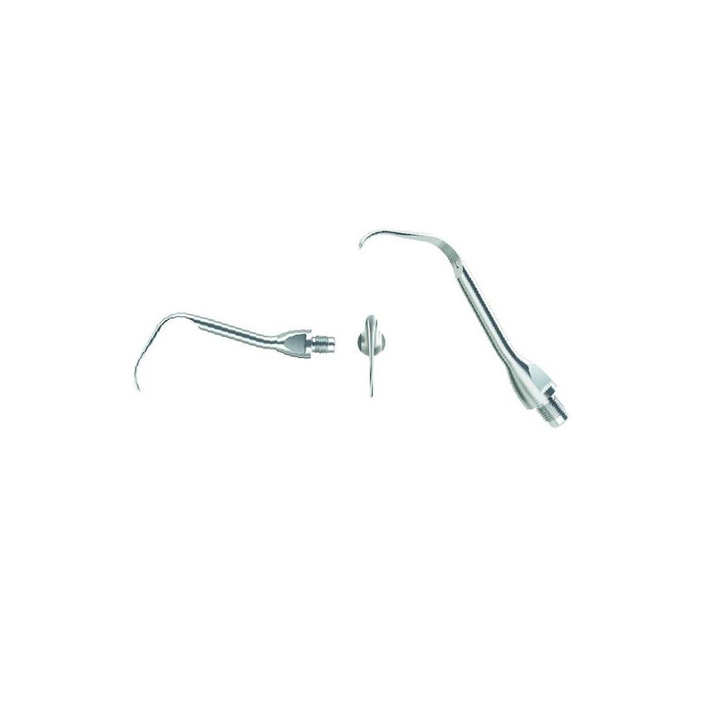 Universal tip for supra- and subgingival scaling. Similar to PE-40H tip, but with a slimmer shape. The thinner design enables better reachability into approximal spaces and deeper periodontal pockets.