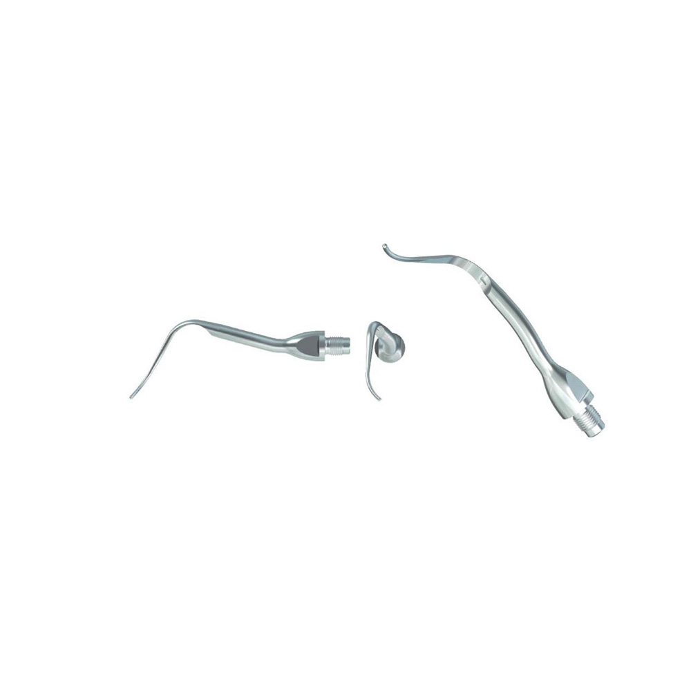 Used for deeper subgingival scaling and molar furcations. Tip angled to left for better access to furcations.